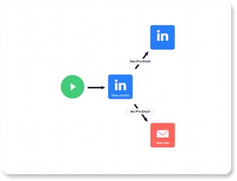 ✅ The “has Pro Email?” condition lets you know if the lead has been enriched with a pro email and in case of absence to engage them through a different channel.