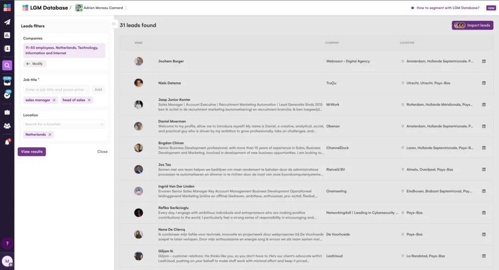 Sélectionner les leads : Détermine ton point de contact (POC) dans chaque compte sélectionné.