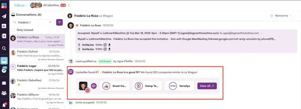 Ça te permet de continuer à faire croître continuellement ton outreach avec un effort minimal, en utilisant Lookalike Search pour capitaliser sur chaque interaction réussie.