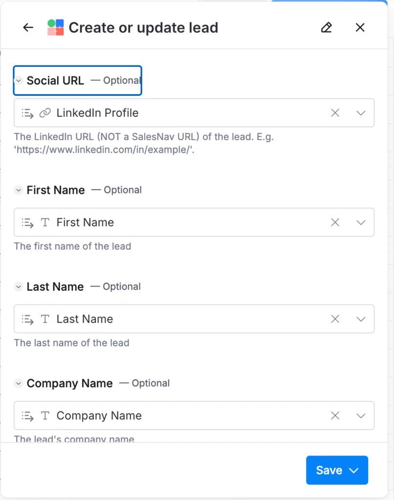 Une fois connecté, tu pourras sélectionner ton audience et mapper les datas de tes leads.