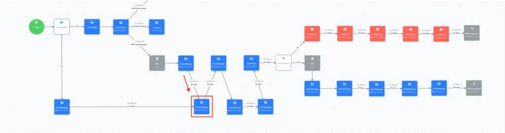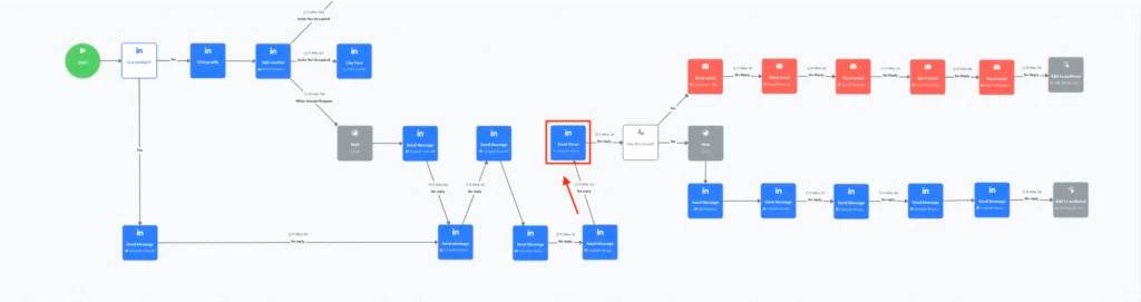 Pour cet exemple, nous nous concentrerons sur la partie de la séquence où les prospects sont déjà en contact avec nous ou ont accepté notre invitation.