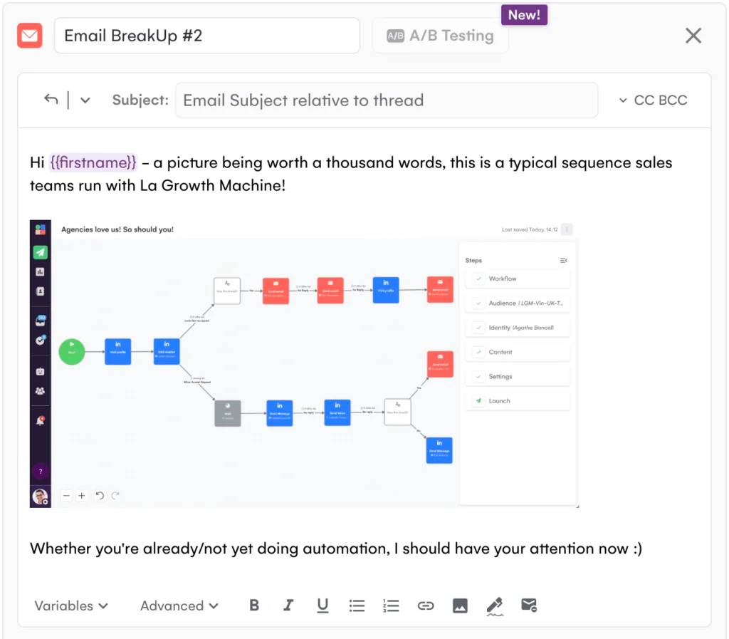 Mettre l’accent sur le fait qu’il va rater une opportunité : le “If your pipeline is dry” est le cauchemar de tout sales. On combine ça avec de l’urgence (dernière tentative) et de la curiosité autour d’une nouvelle techno (lead gen pilotée par l’IA).