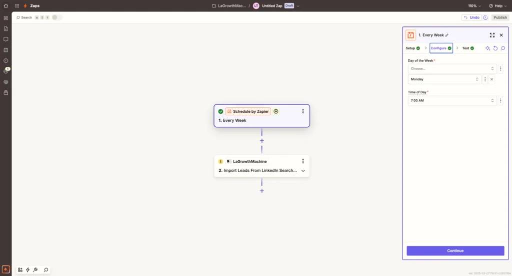 Maintenant que tu as une recherche qui se met à jour automatiquement chaque semaine avec de nouveaux leads sur LinkedIn, on va créer un Zap pour les importer automatiquement dans La Growth Machine.