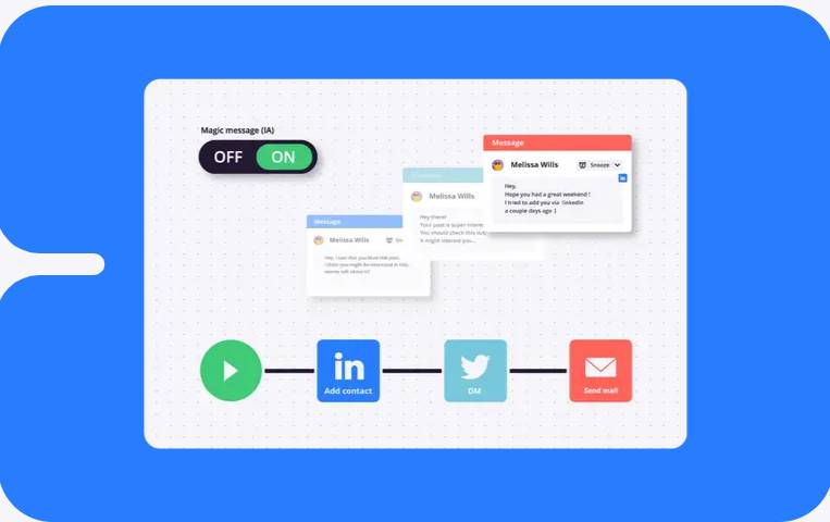 Vous cherchez à améliorer l’efficacité de votre prospection commerciale ? LaGrowthMachine vous permet de générer en moyenne 3,5x plus de leads, tout en gagnant un temps fou sur l’ensemble de vos processus. En vous inscrivant aujourd’hui, vous bénéficiez d’un essai gratuit de 14 jours pour tester notre outil !