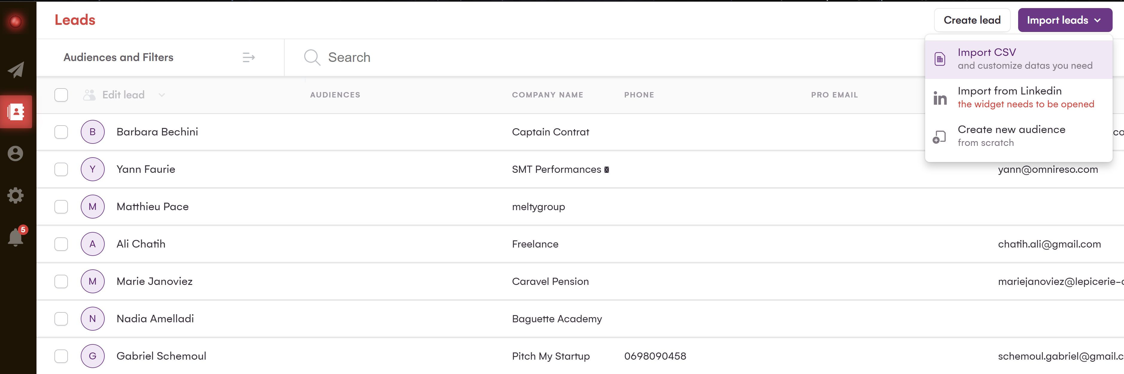 Vous n’avez qu’à cliquer sur l’onglet “import leads” et drag & drop votre fichier CSV.