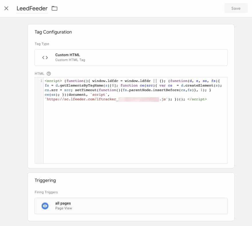Maintenant, chaque fois que quelqu’un visite https://lagrowthmachine.com, cela déclenchera le script de Leadfeeder et identifiera l’entreprise qui visite la page.