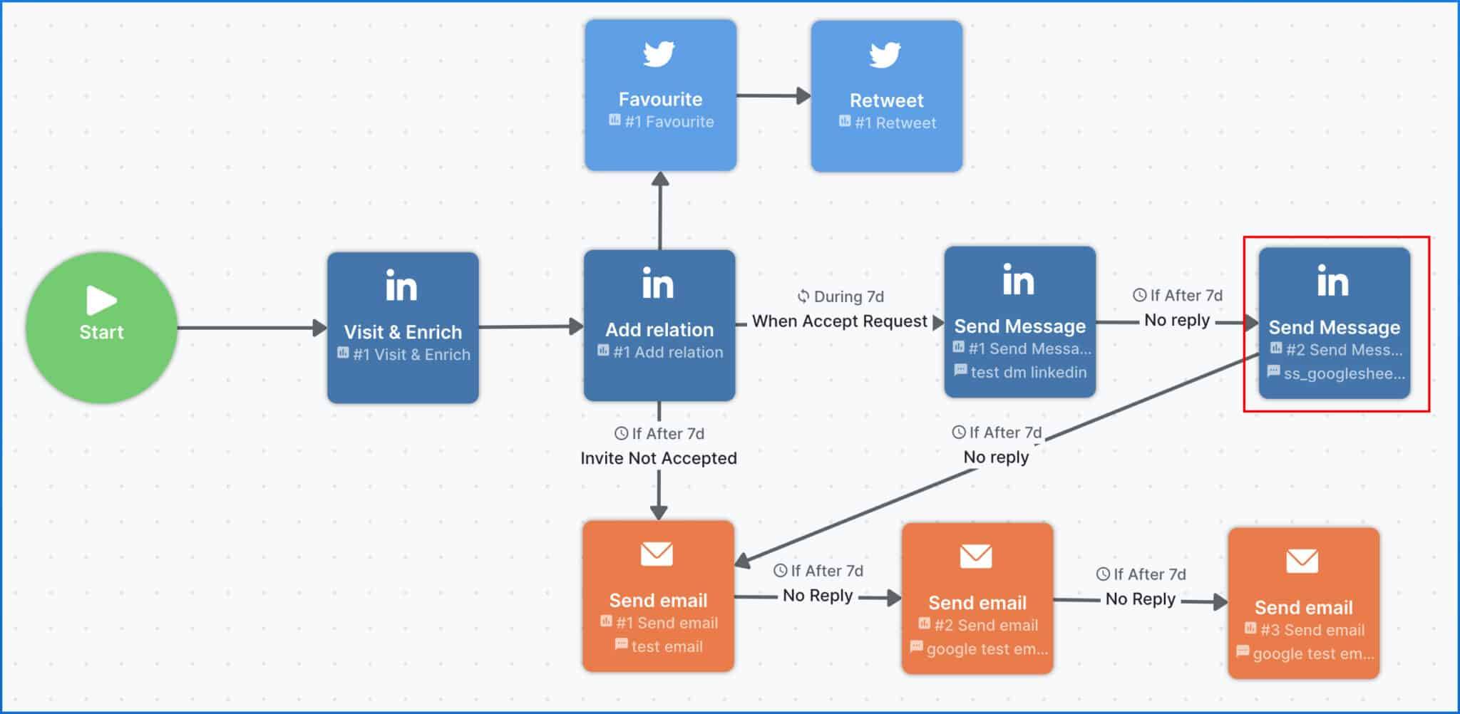 - dès qu’il accepte, envoyer un message de suivi, puis un autre s’il n’y a pas de réponse après 7 jours