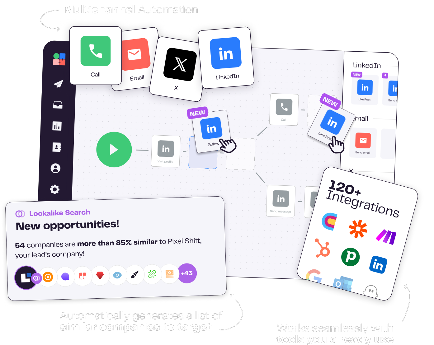 Enrich, automate outreach, engage, and sync to CRM to cover every step of your outbound system without scaling workload.