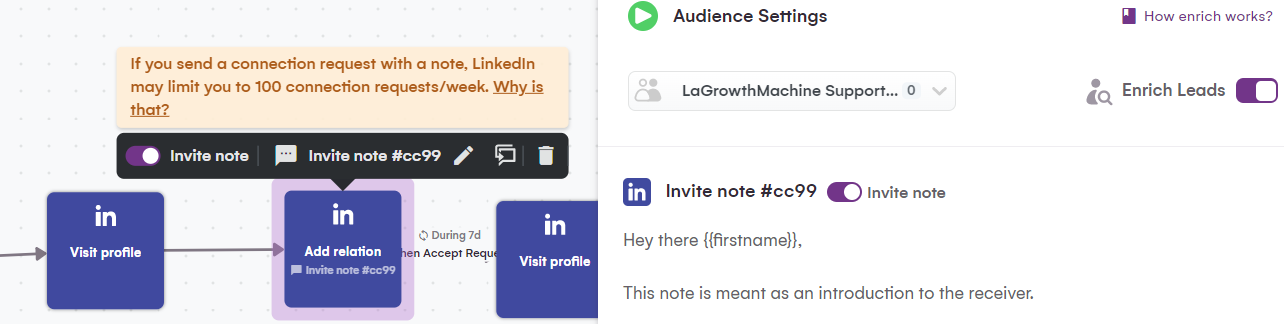 Noi di LaGrowthMachine, tuttavia, di solito non raccomandiamo di inviare note insieme alla tua richiesta di connessione.