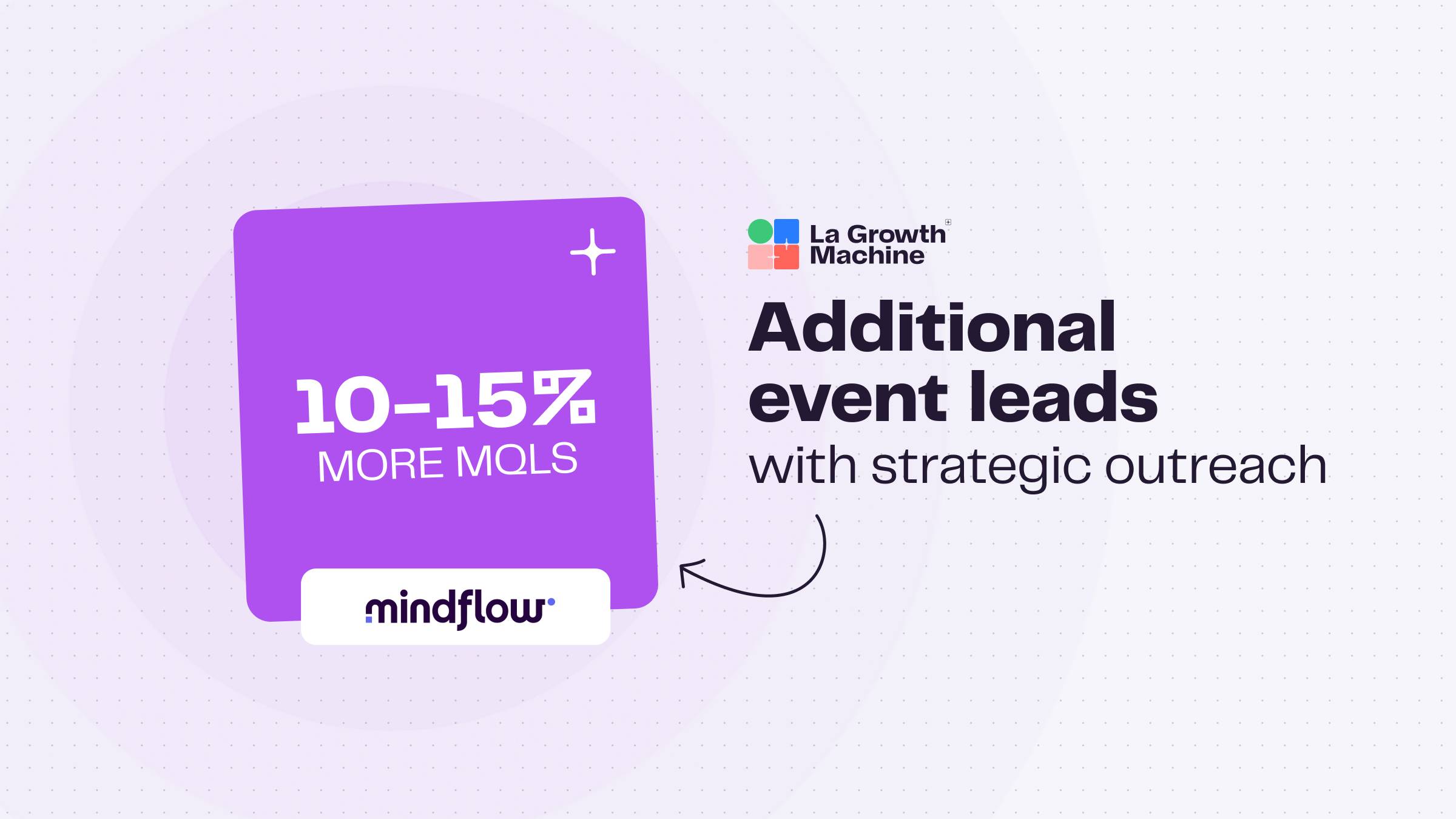 Beyond their intent-based campaigns, Mindflow enhanced their substantial event marketing investment by implementing systematic pre and post-event outreach sequences. This approach generates 10-15% more MQLs compared to booth-only presence, maximizing ROI from their ~20 annual industry events without additional event costs.