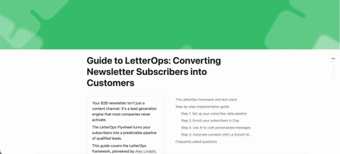 This guide walks you through the LetterOps framework, a step-by-step system for converting your B2B newsletter subscribers into a pipeline of qualified leads using Beehiiv, Clay, and La Growth Machine. Download it to get a full implementation playbook, ready-to-use outreach templates, and Clay AI prompts that turn every new subscriber into a real sales opportunity.
