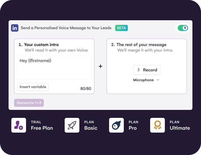 Voice messages will explode your response rates. And with LGM Voice AI, you will be able to personalize them on a large scale!