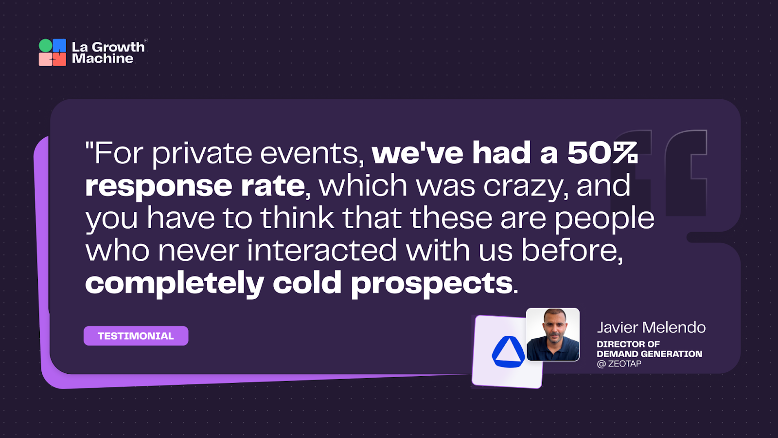 For sales leaders facing similar challenges, Javier’s advice is: “Why pay an agency €10,000 to fill a room when you can be relevant while making connections and do it yourself? For individual contributors and companies, you pay for La Growth Machine but can generate thousands in pipeline acceleration.”